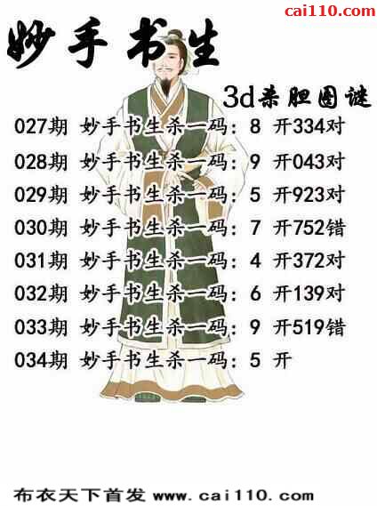 妙手书生3d034期杀码图(原创)