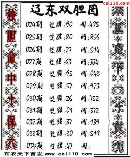 3d23年034期辽东今日双胆图