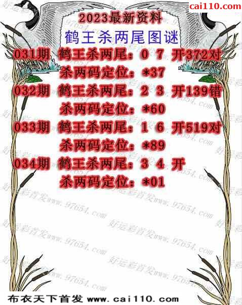 鹤王23-034期福彩3d杀尾图谜(原创)