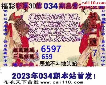鹤王23-034期福彩3d杀尾图谜(原创)
