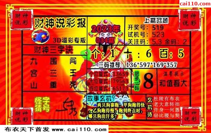 鹤王23-034期福彩3d杀尾图谜(原创)