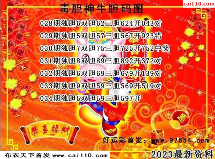 23034期毒胆神牛推荐胆码图(原创) 连
