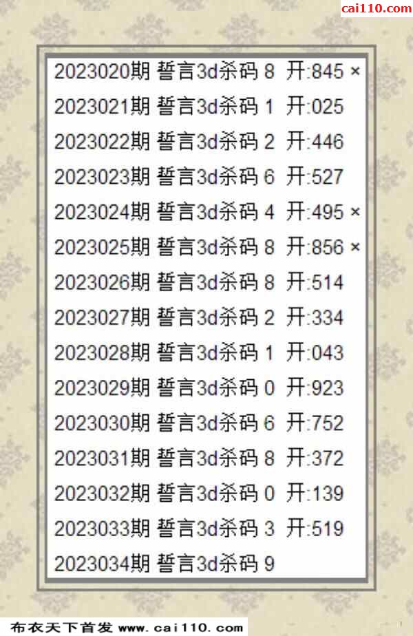 2023034期誓言必中杀码预测