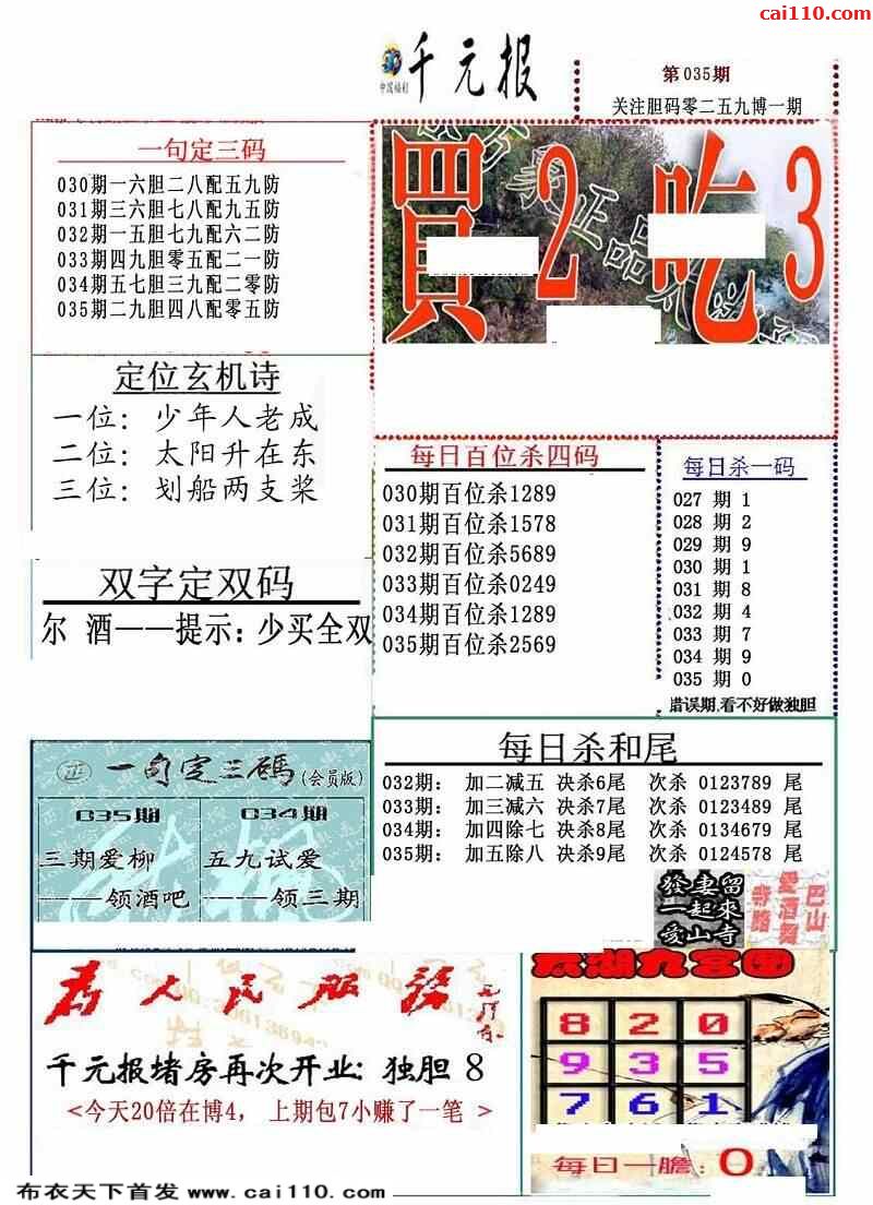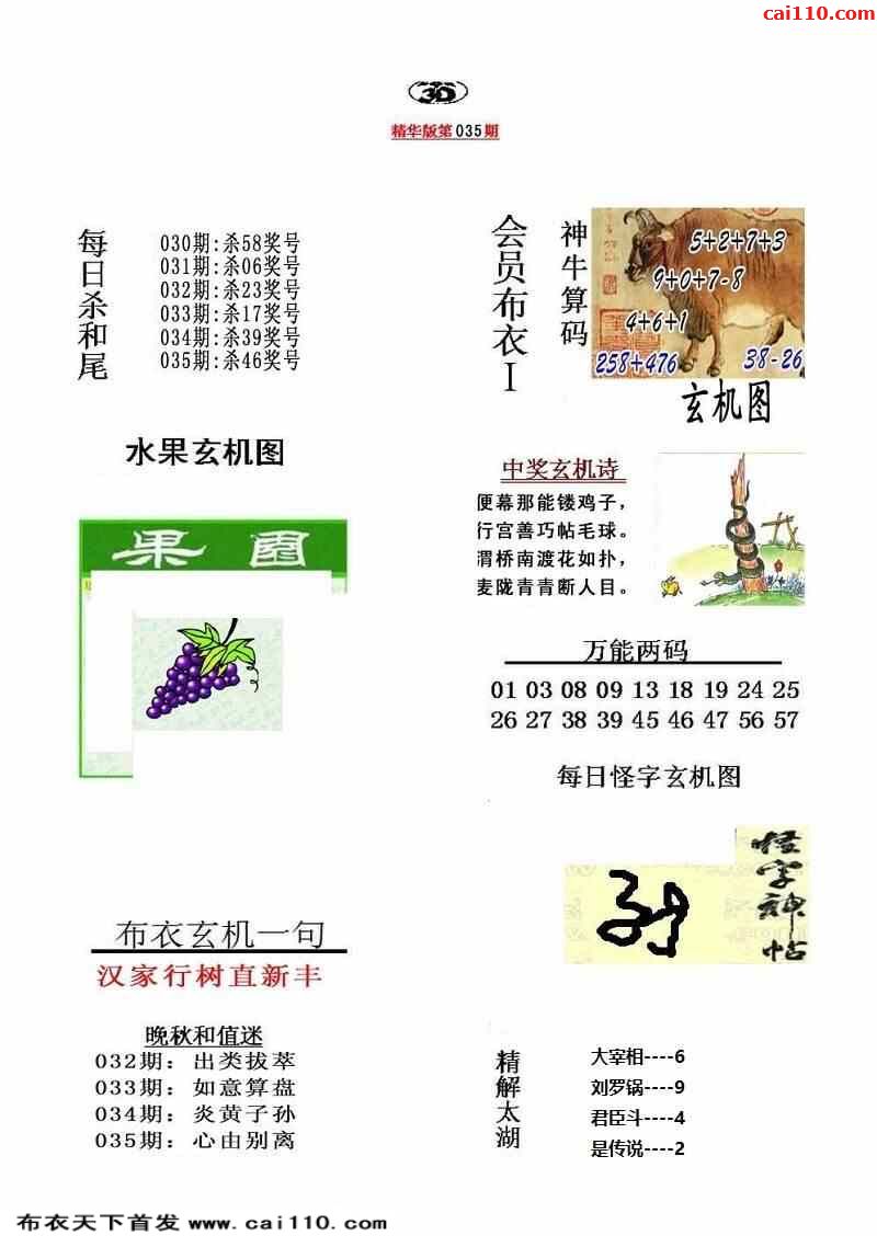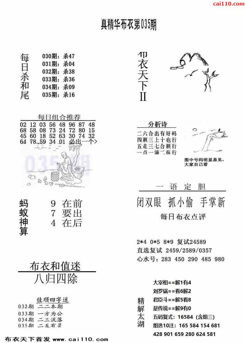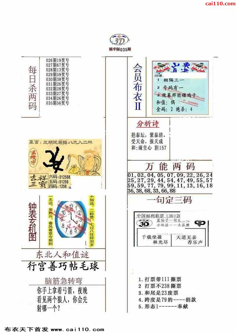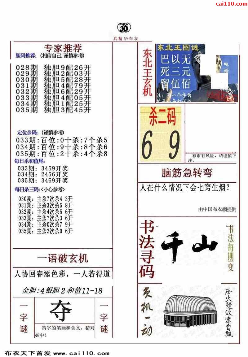 福彩23035期3d真精华布衣+布衣早报(转载)