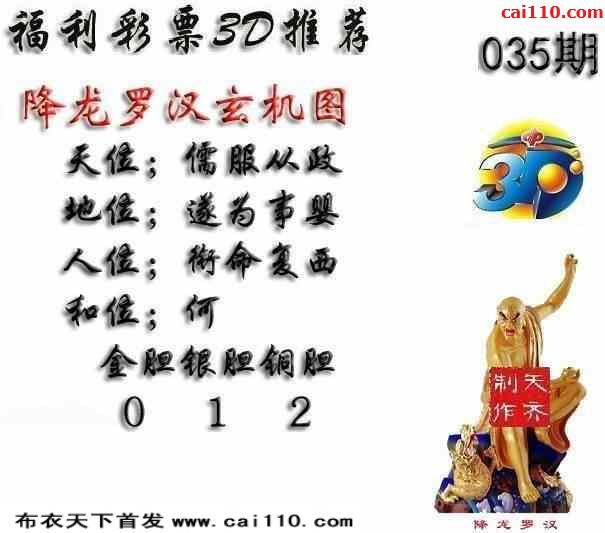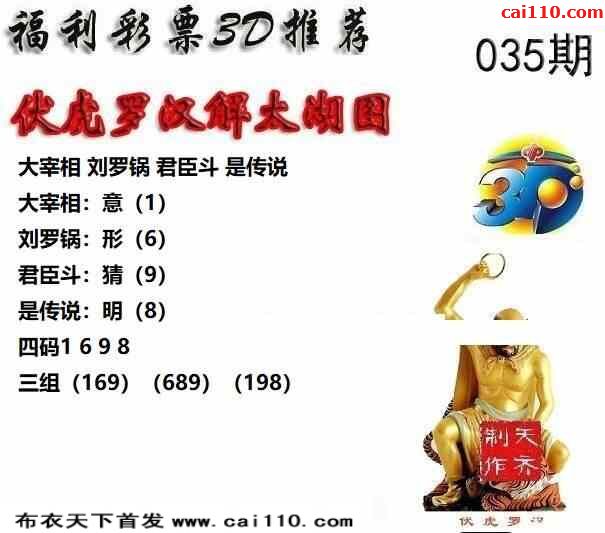 福彩23年035期布衣天下3D藏机图谜