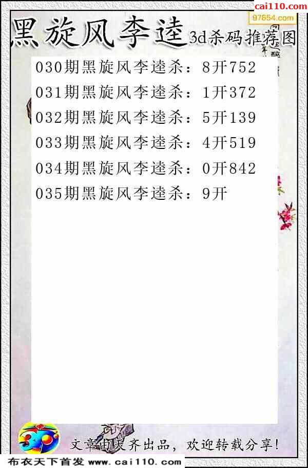 福彩23035期3d真精华布衣+布衣早报(