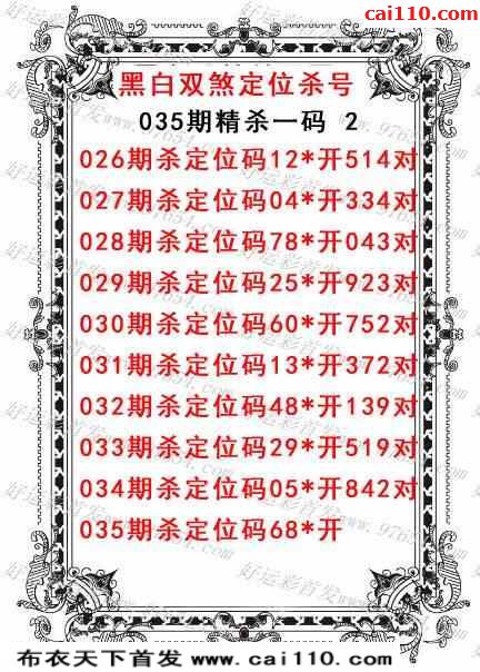 天齐网保真版杀号图23035期 连对中