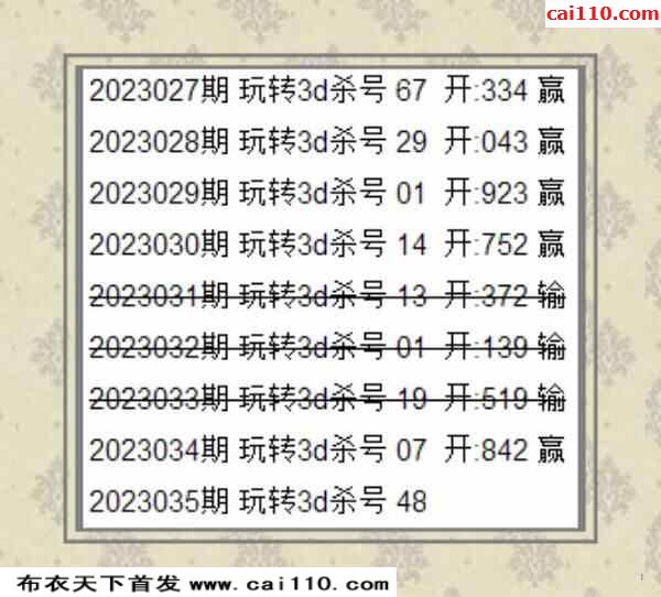 玩转3D杀号福彩23035期