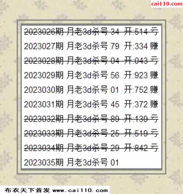 彩浪每期杀码推荐035期