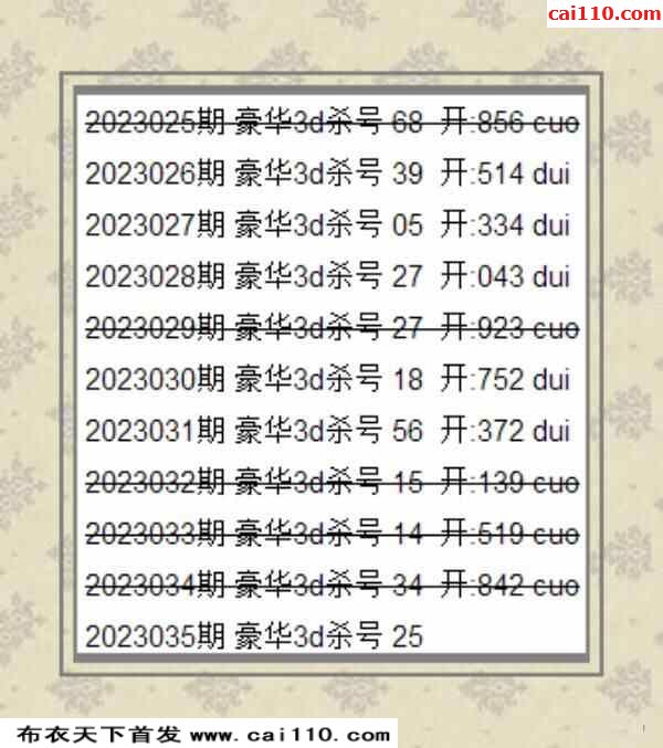 彩浪每期杀码推荐035期
