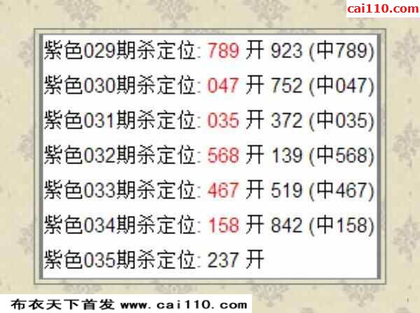 紫色2023035期杀定位:237