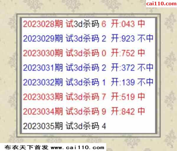 老彩民3D定位杀码23035期