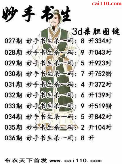 妙手书生3d036期杀码图(原创)
