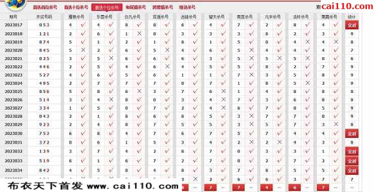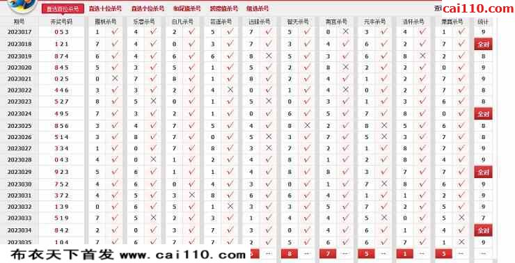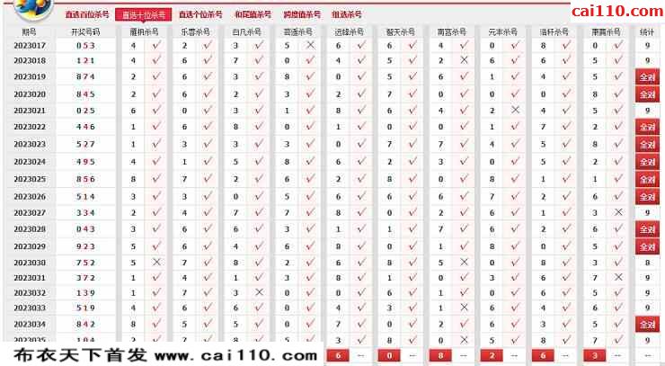 2023036期360网站杀号定胆图表