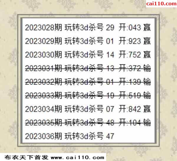 便民工作室杀双码福彩3D2023036期