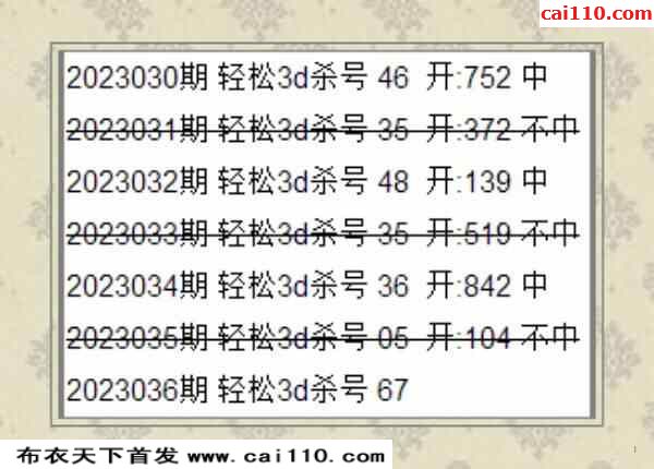 彩浪每期杀码推荐036期