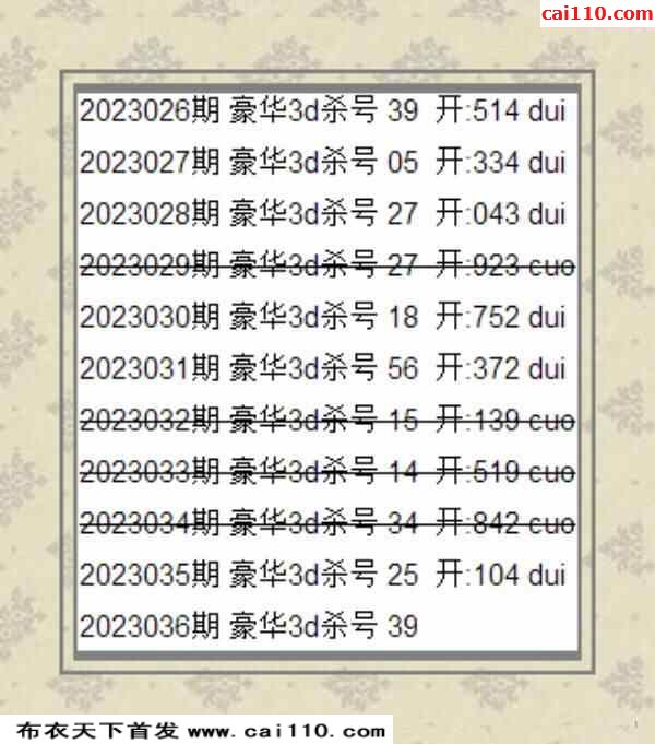彩浪每期杀码推荐036期