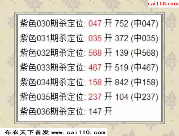 紫色2023036期杀定位:147
