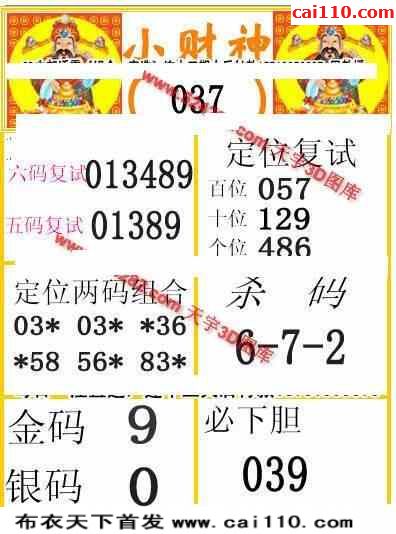 23年037期3d天彩财神五码复试图