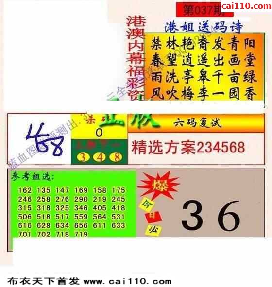 23年037期武盟杀码最新三d图迷