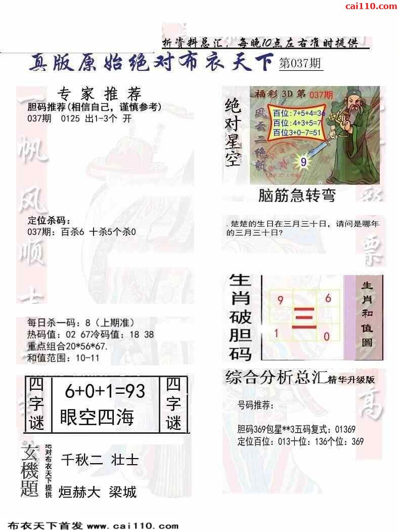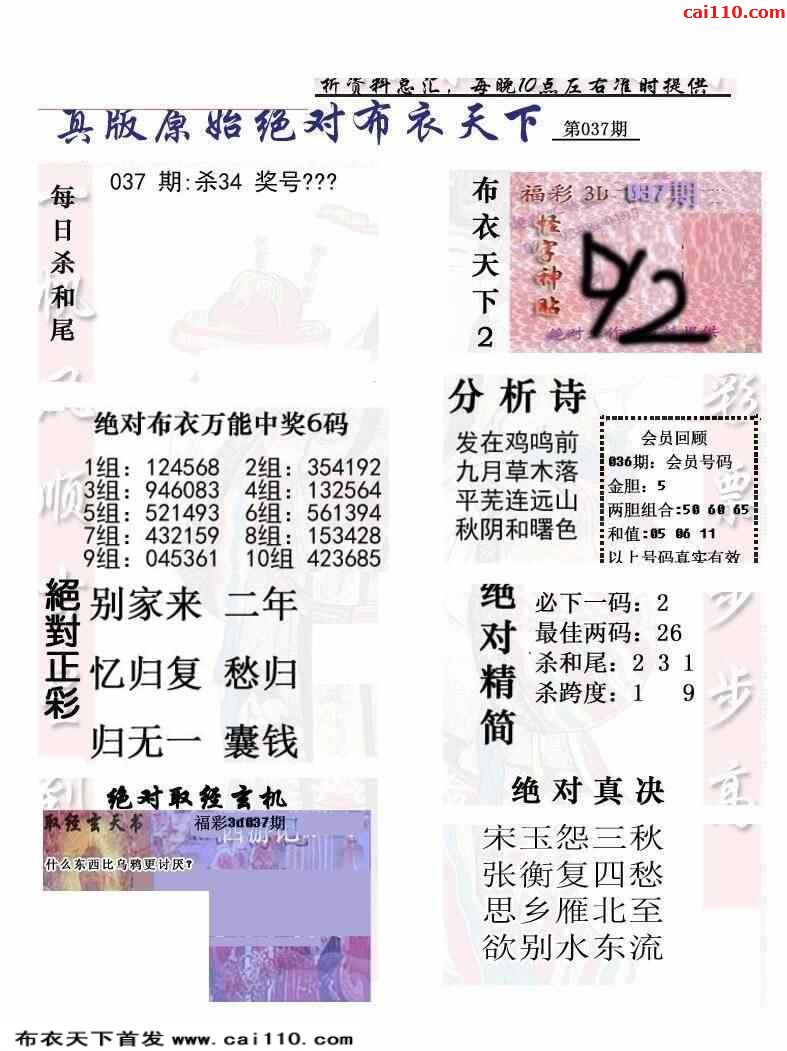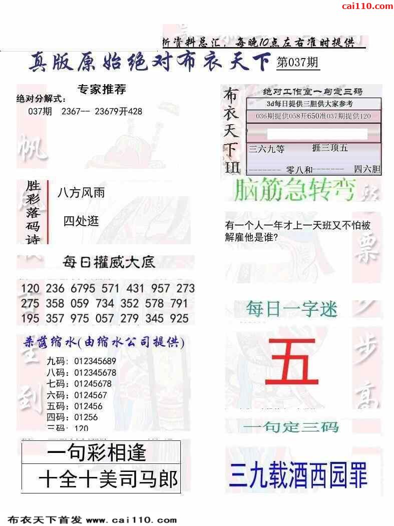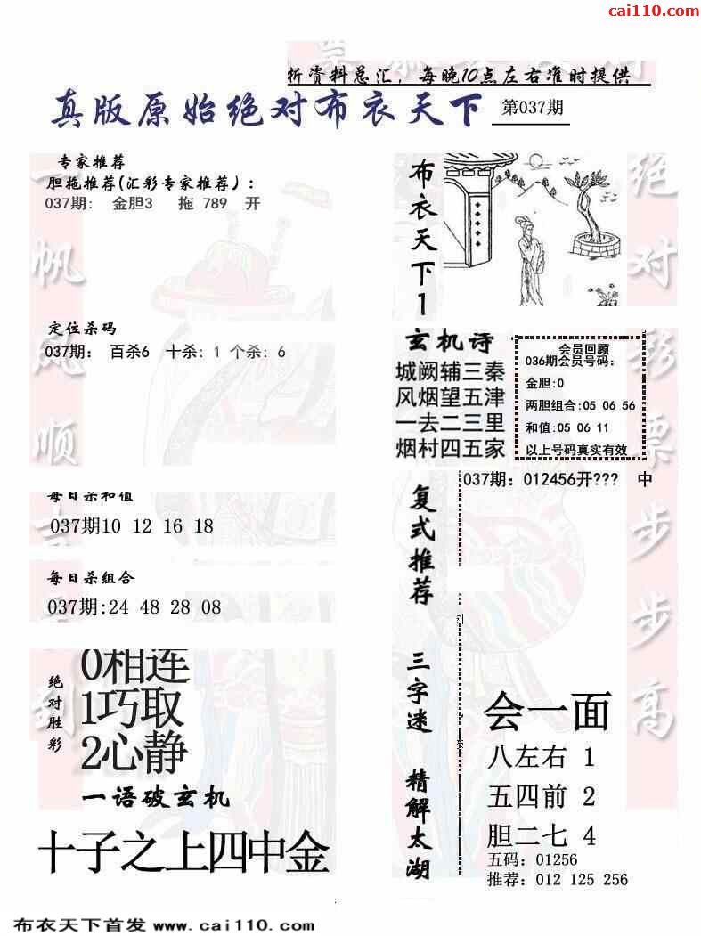 23年037期新版布衣千元报每日推荐