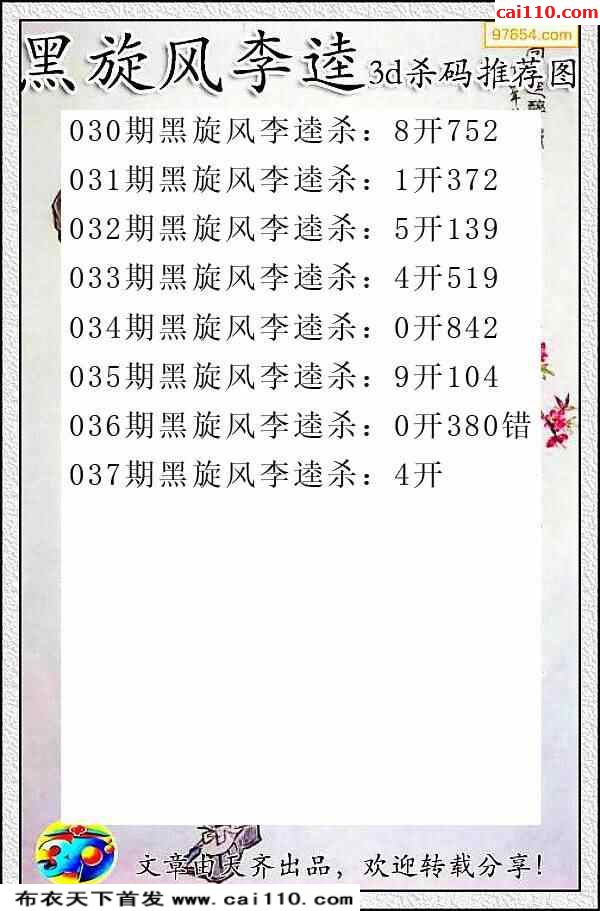037期执笔圈号预测3D杀号原创