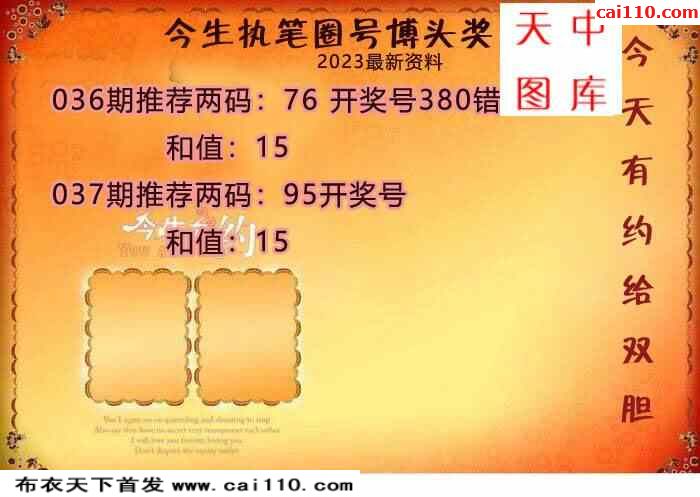 23年037期财神推荐胆码图(原创)