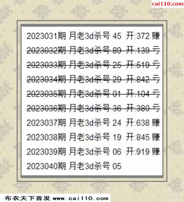 玩转3D杀号福彩23040期