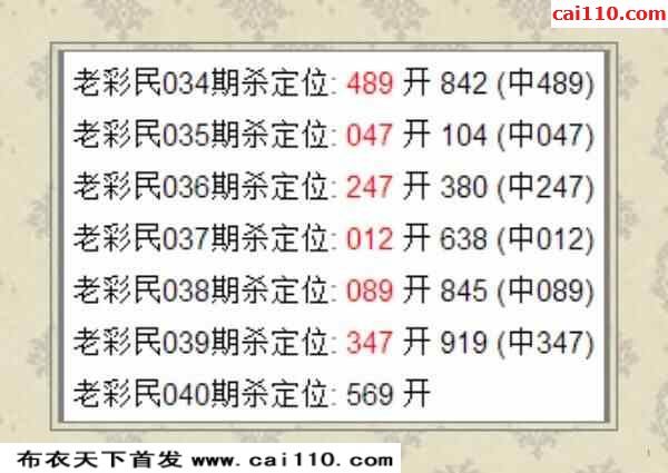 老彩民3D定位杀码23040期