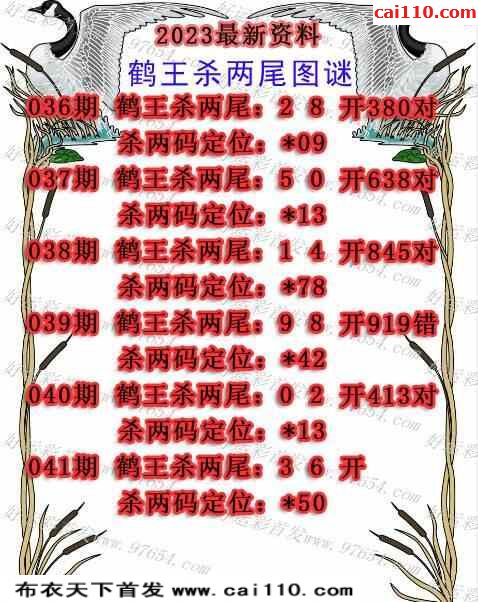 鹤王23-041期福彩3d杀尾图谜(原创)