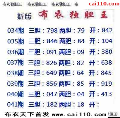 041期布衣独胆王胆码预测