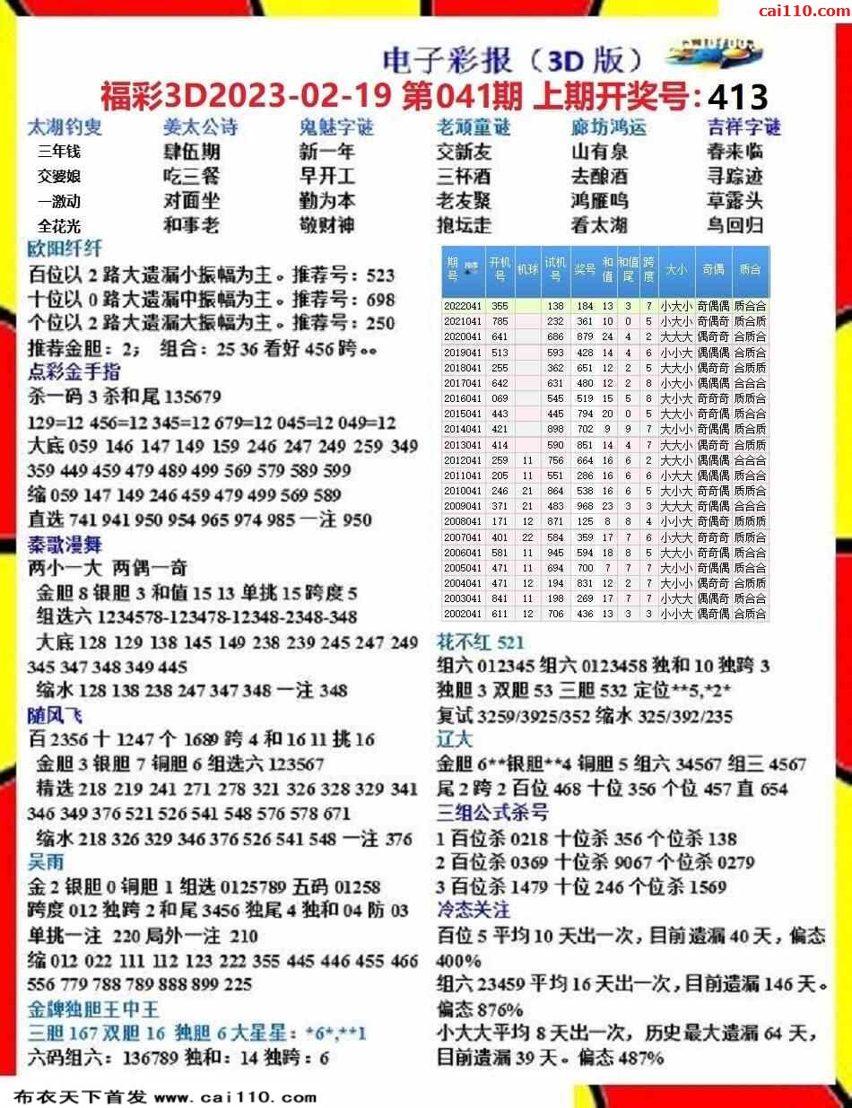 鹤王23-041期福彩3d杀尾图谜(原创)