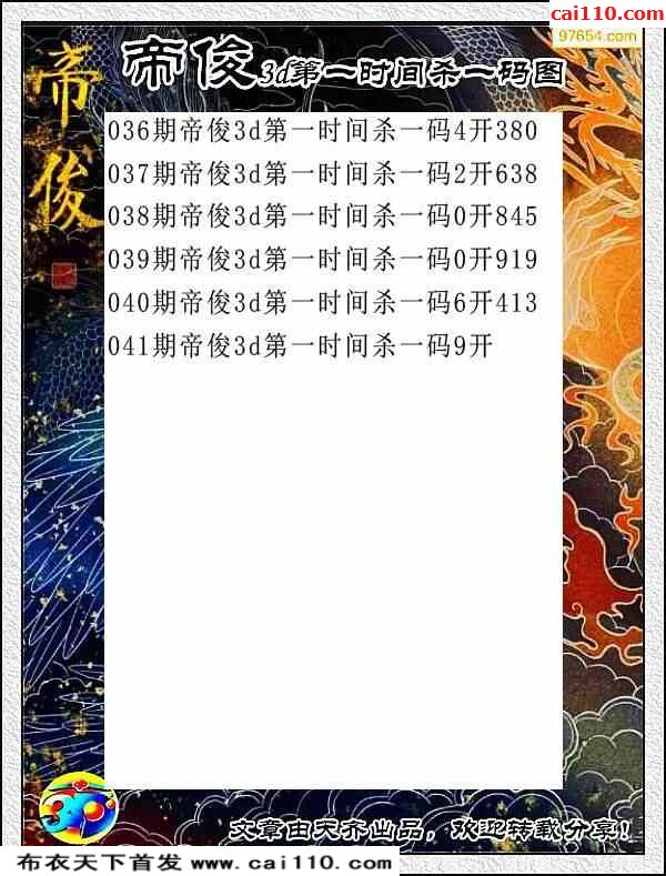 鹤王23-041期福彩3d杀尾图谜(原创)
