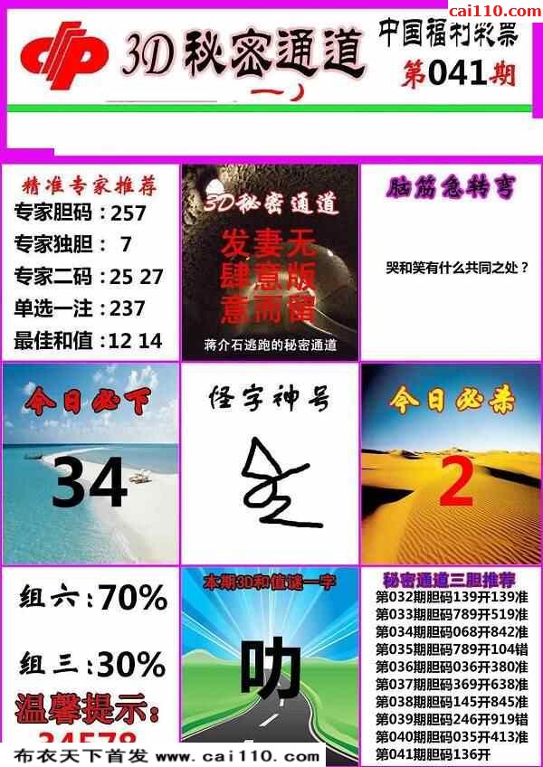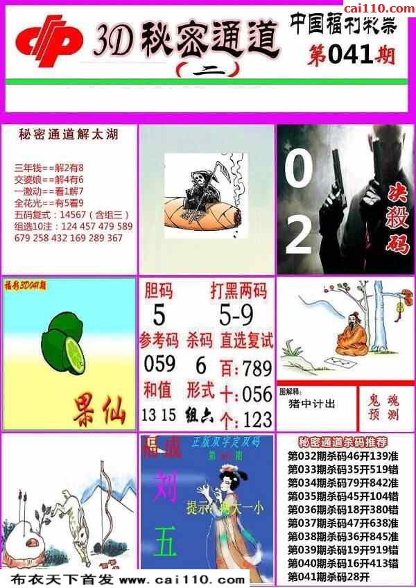 23年041期秘密通道福彩3D图谜版AB