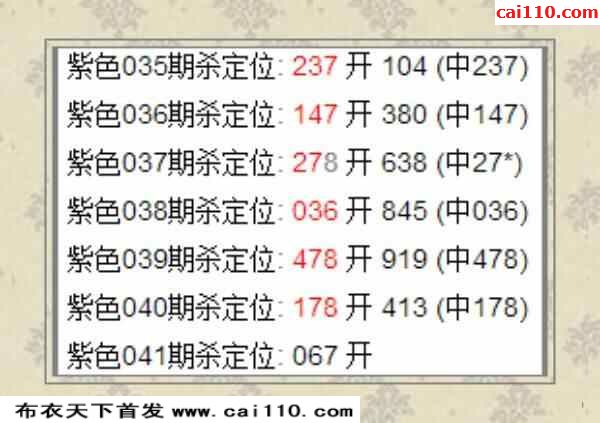 紫色2023041期杀定位:067