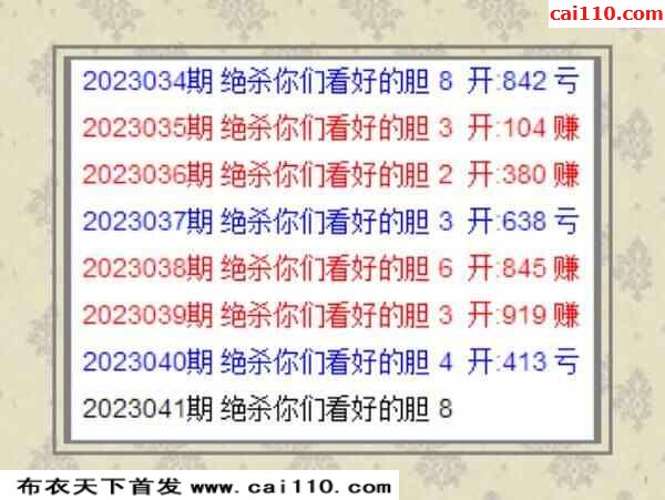 彩浪每期杀码推荐041期